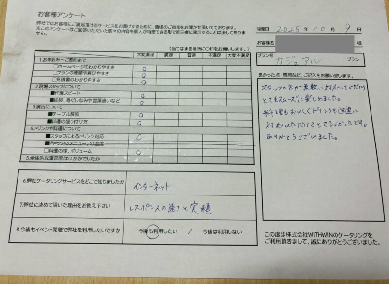 まずはご担当者様直筆のアンケート結果からご紹介いたします☆