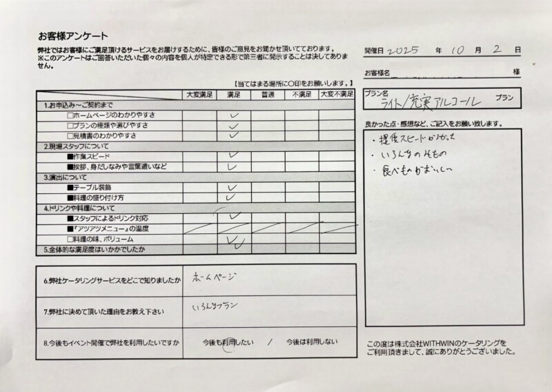 まずはご担当者様直筆のアンケート結果からご紹介いたします☆