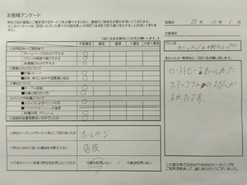 まずはご担当者様直筆のアンケート結果からご紹介いたします☆