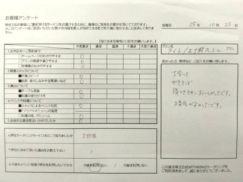 まずはご担当者様直筆のアンケート結果からご紹介いたします☆