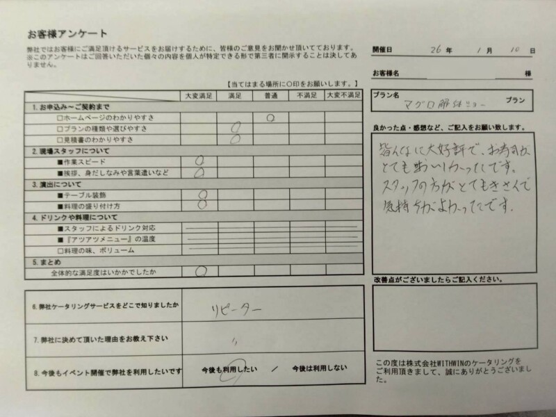 まずはご担当者様直筆のアンケート結果からご紹介いたします✨