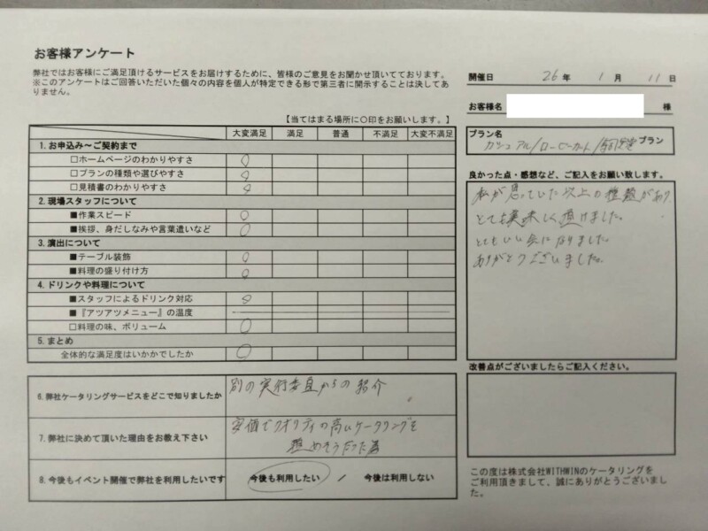 お料理の質はもちろん、とてもいい会になったとの事、大変光栄です!