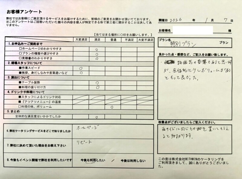 まずはご担当者様直筆のアンケート結果からご紹介いたします☆