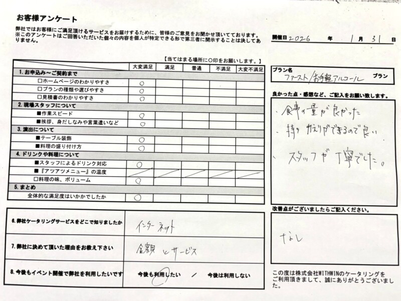 まずは、当日お配りしご記入いただいたお客様アンケートより、嬉しいお声をご紹介いたします。