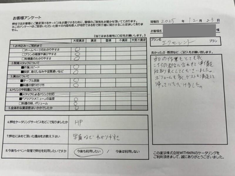 某様、この度はウィン・ザ・デリをご利用いただき誠にありがとうございました。