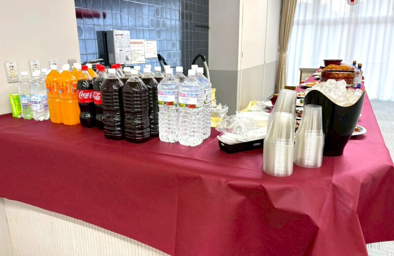 備え付けのカウンターに、お料理とドリンクを並べたビュッフェスタイルでご提供しております。