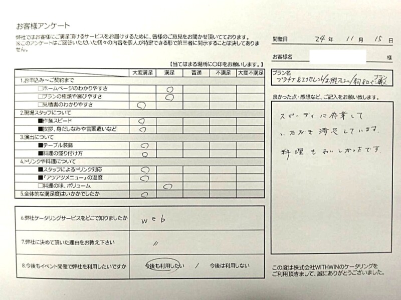 「スピーディーに作業していただき満足しています。