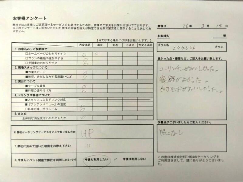 株式会社某様、この度は大切なイベントに弊社をお選びいただき、誠にありがとうございました。
