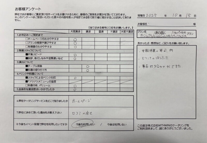 カジュアルプラン60名にてご利用いただきました✨