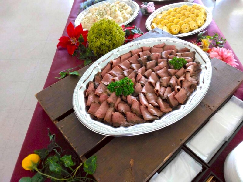 今回のプランは、軽食を中心に構成しつつ、豪華な「お寿司」や「ローストビーフ」を組み合わせた、ウェディングにふさわしい贅沢な内容です。