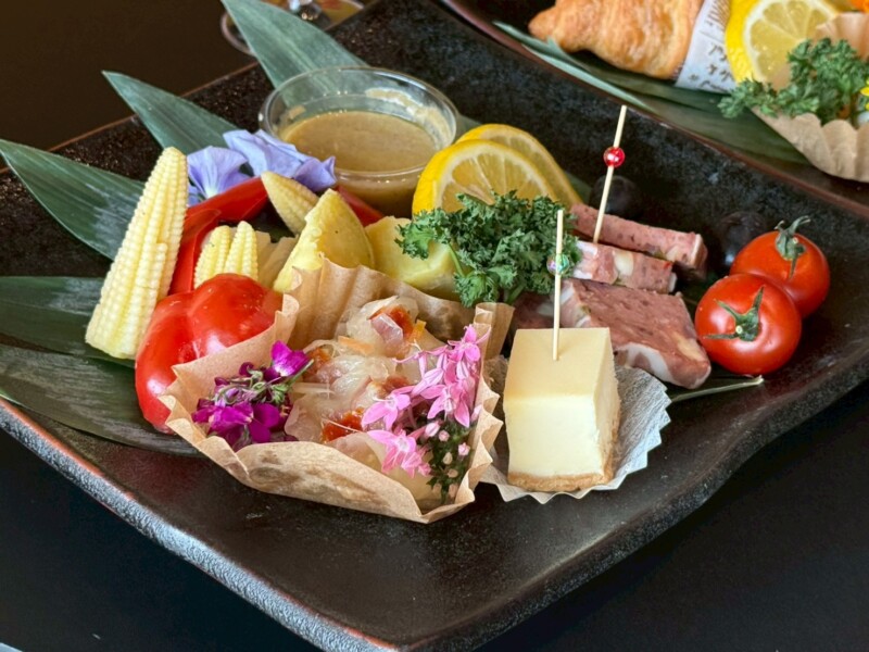 お写真からも伝わる通り、食用花(エディブルフラワー)やフレッシュな野菜をふんだんに使用。