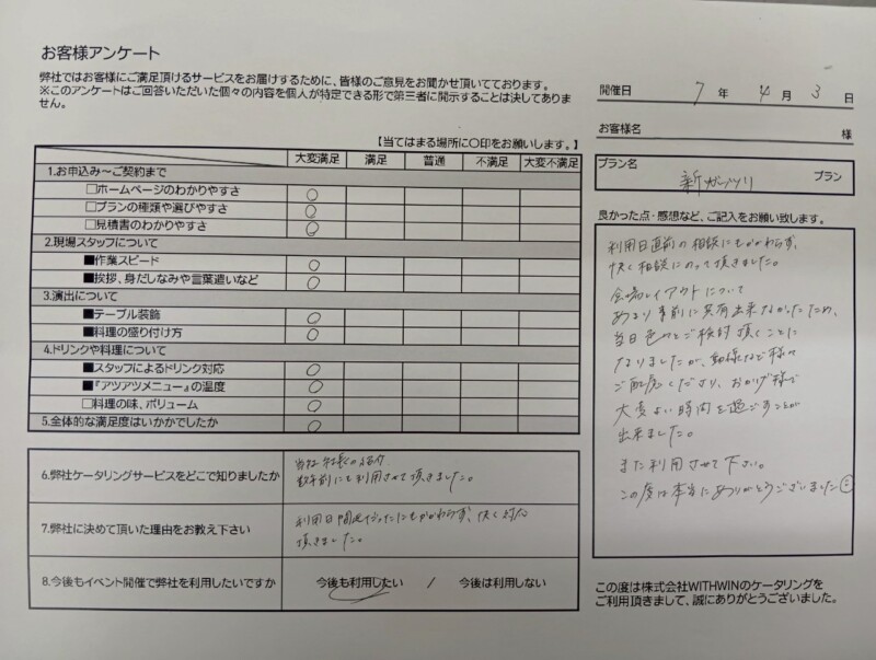 今後も皆さまにご満足いただけるケータリングサービスを目指してまいります。